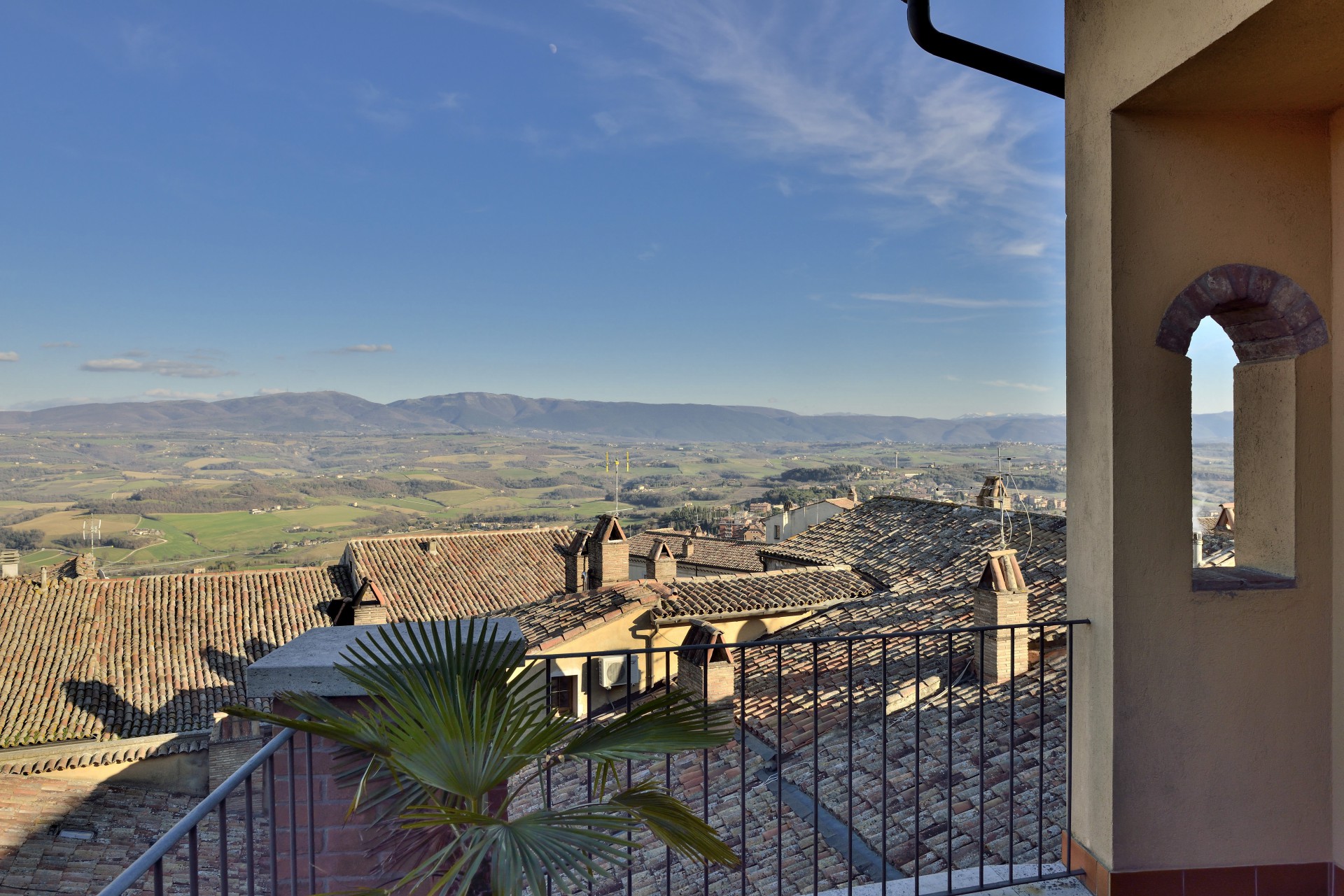 La Junior Suite Bellavista, arredata con mobili originali anni quaranta, è la camera posta più in alto; dal suo terrazzino si vedono le verdi colline Umbre, le meravigliose albe e l’animata Piazza D’Alviano.
