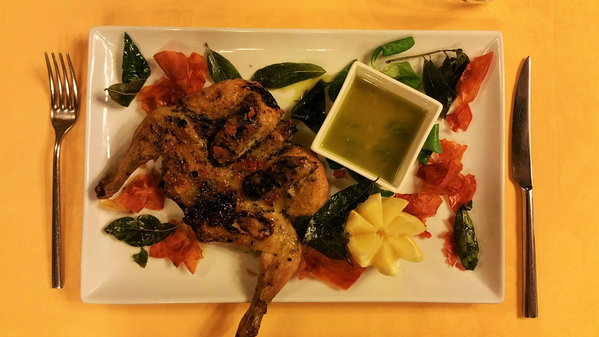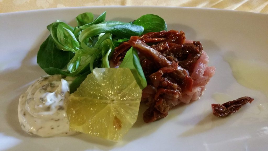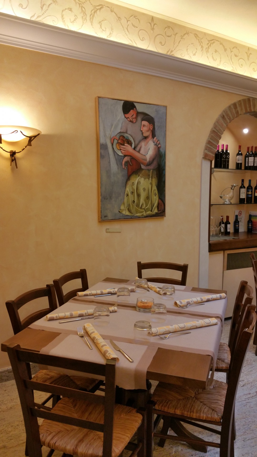 The dining room has been carved out of a wine cellar. Ancient cisterns and wells are still well preserved and visible inside the restaurant room.