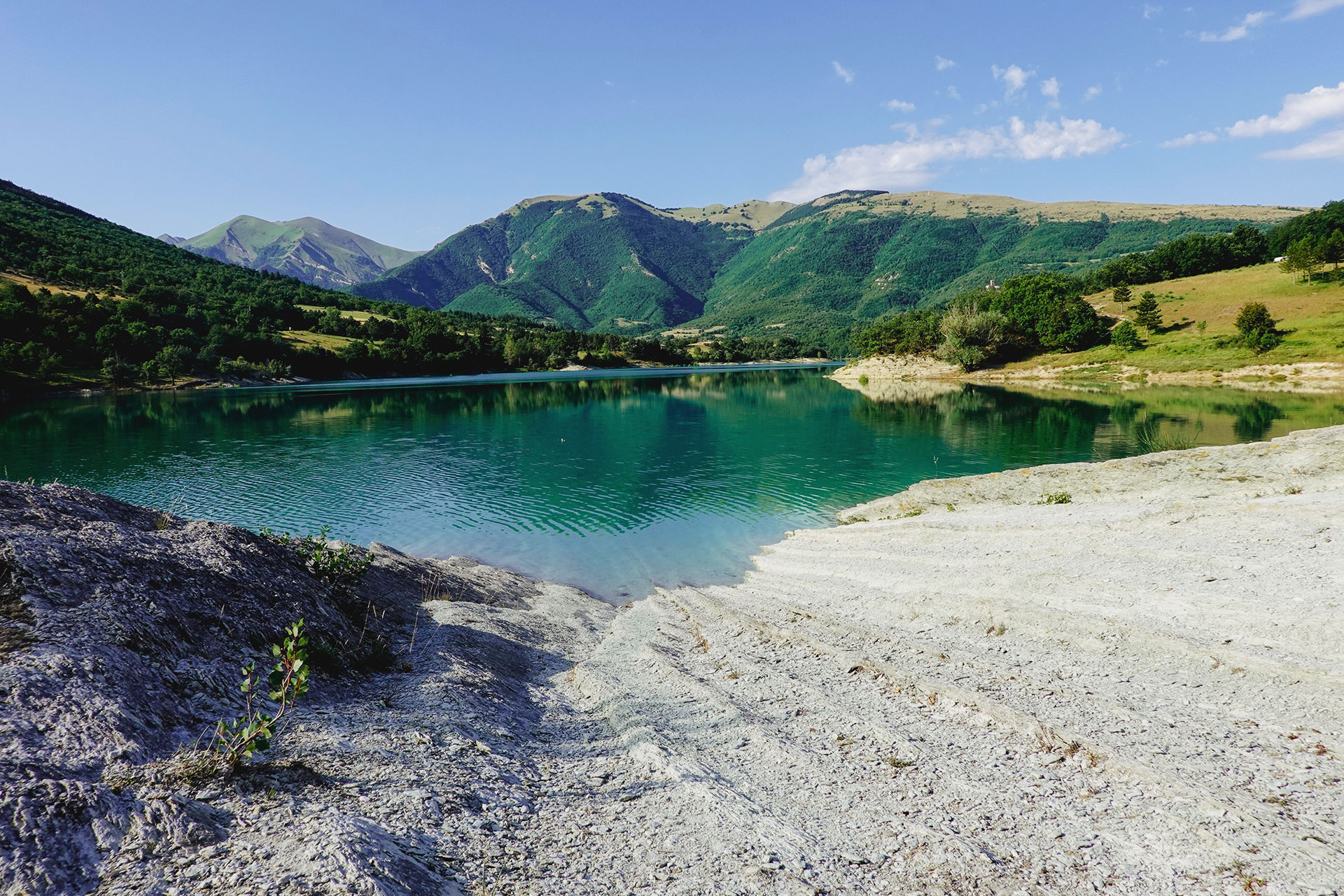 Lake Fiastra is located in the Monti Sibillini National Park, in the Marche region.