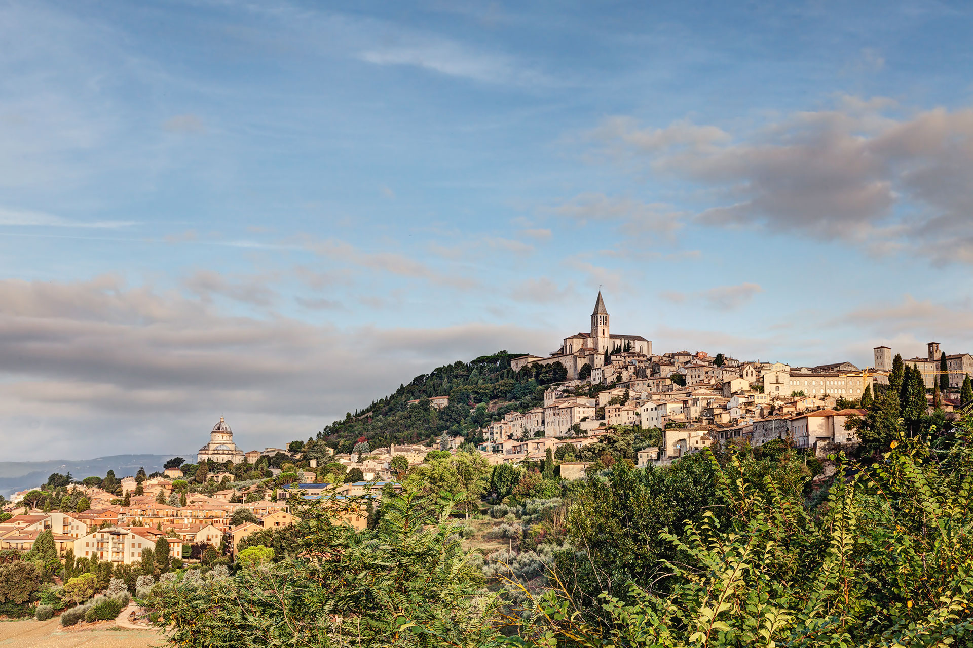 Arroccata su un’altura, che domina la valle del Tevere, Todi è un’affascinante città medievale con una lunga storia, che risale addirittura al XIII secolo a.C. La città presenta tre cinte murarie che scandiscono le diverse epoche. La terza cinta, eretta in epoca medievale, ha diverse porte d’accesso ancora conservate, tra cui la Porta Perugina, una delle porte medievali più belle giunte fino a noi.