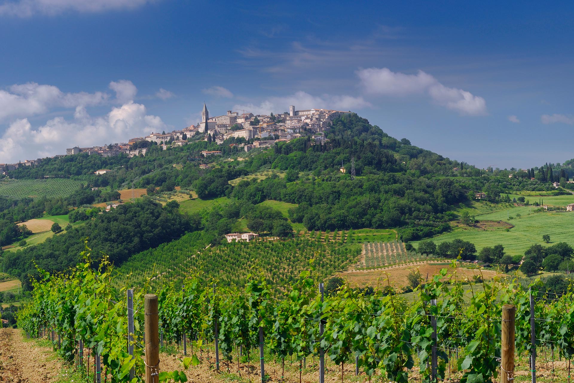 La posizione di Montefalco è uno degli elementi che contribuisce a rendere questa città così bella e caratteristica. Si trova infatti in cima a un colle, tra oliveti e vigneti, e a valle scorrono i fiumi Clitunno e Topino. Viene chiamato “la ringhiera dell’Umbria” perché offre una vista unica che spazia in ogni direzione per ampia parte del territorio regionale. Da visitare assolutamente sono la chiesa di San Francesco – famosa soprattutto per il ciclo di affreschi “Le Storie della vita di San Francesco” realizzati nel 1400 da Benozzo Gozzoli e per la Natività del Perugino – e la Piazza del Comune dalla particolare forma quasi perfettamente circolare e incorniciata da architetture storiche. Tanti inoltre sono i luoghi di interesse tra chiese e palazzi storici e per chi passa a Montefalco è d’obbligo l’assaggio del pregiato vino a cui dà il nome, il Sagrantino di Montefalco. Todi, nota per essere stata definita “città ideale” o “la città più vivibile del mondo” e anche per essere la città di Jacopone, è un autentico scrigno di arte, architettura, storia e paesaggio. Anch’essa è arroccata su un colle, col Tevere che scorre a valle. Qui tra i principali monumenti da ammirare ci sono il Tempio della Consolazione e il Duomo, la chiesa di San Fortunato col suo campanile visitabile che offre una vista mozzafiato su gran parte del centro cittadino, la piazza medievale, le cisterne romane e il palazzo vescovile magnificamente affrescato.