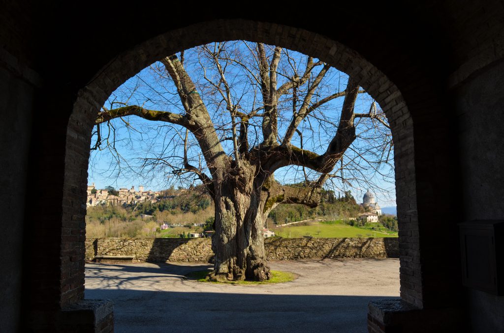 Il tiglio di Montesanto viene chiamato anche tiglio di San Bernardino perché venne piantato per ricordare l’inizio della predicazione del religioso a Todi.